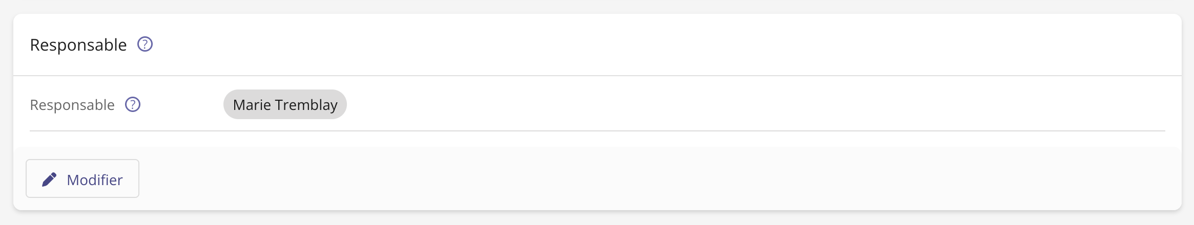 Un responsable peut être désigné parmi les utilisateurs dont le rôle est Admin ou Éditeur.