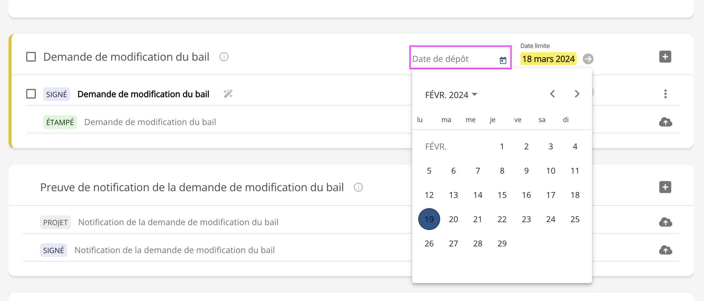 Entrer la date de dépôt au TAL, qui, pour être valide, doit être au plus tard la date limite.