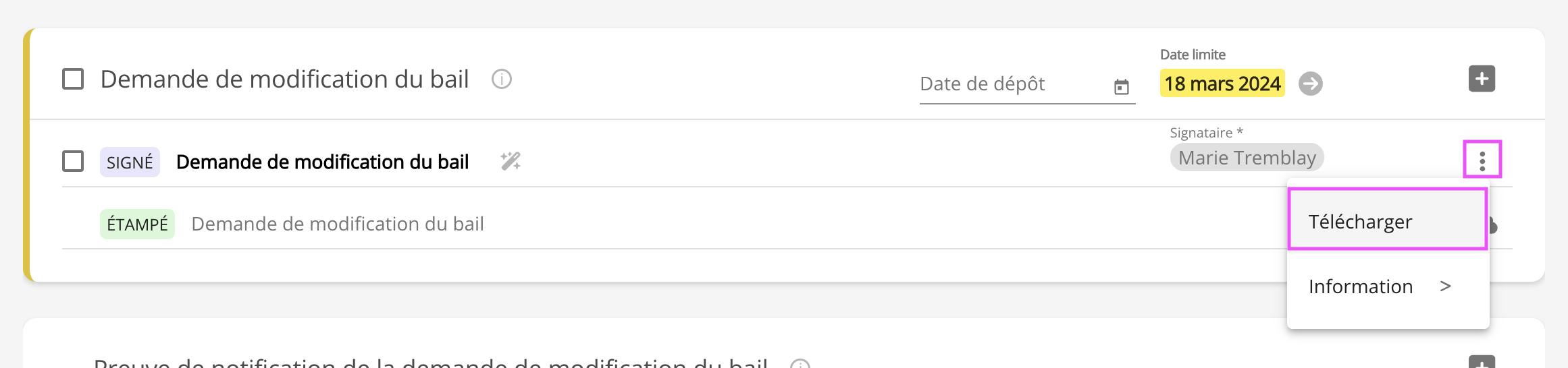 Demande à déposer
