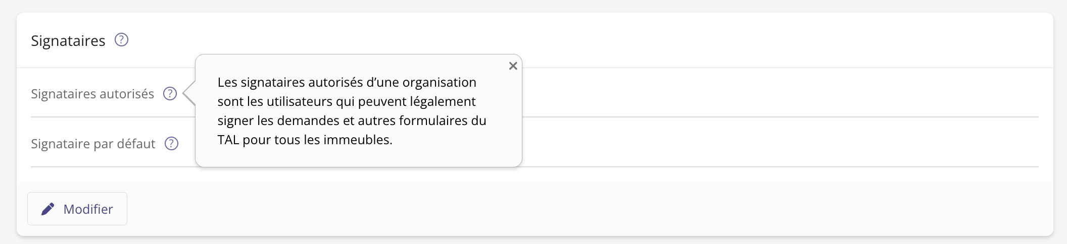Des infobulles ont été ajoutées pour ce qui concerne l’assignation d’utilisateurs en tant que responsables ou signataires