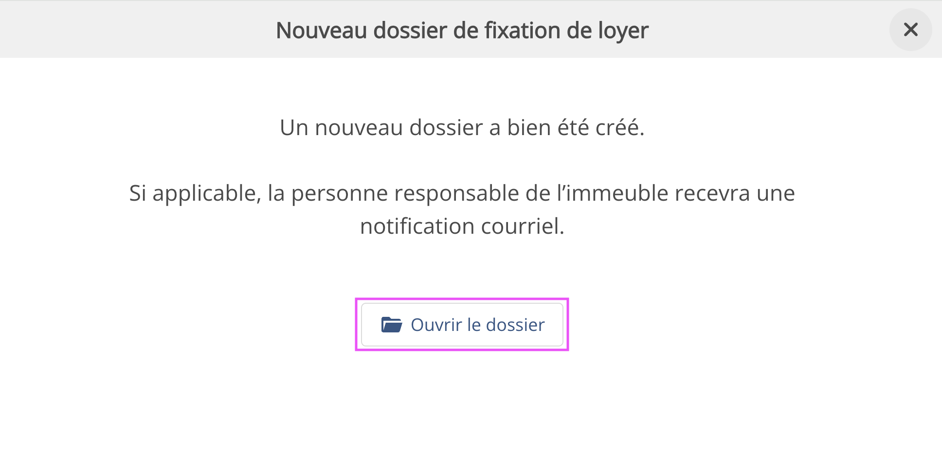 La page de confirmation de la création d’un dossier a été revue : son bouton central permet désormais d’ouvrir le dossier qu’on vient de créer.