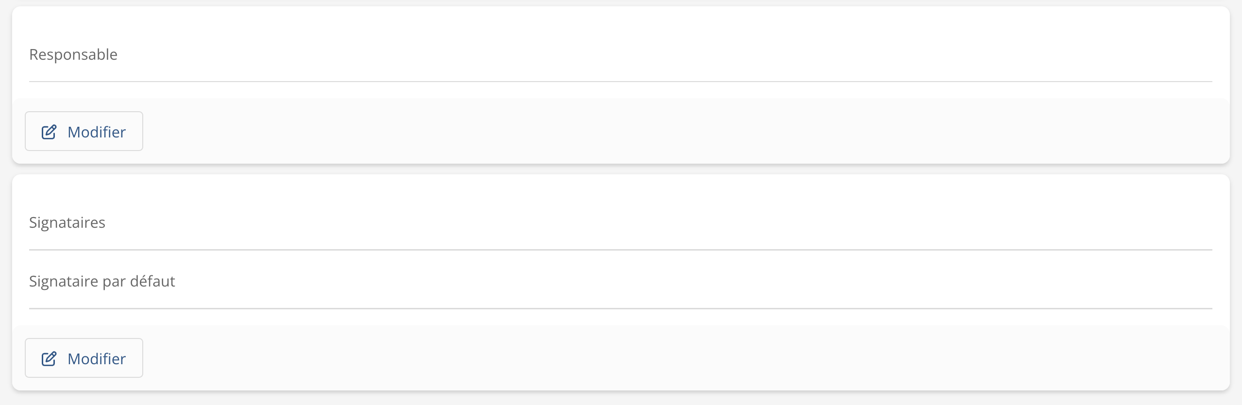 Les boites de responsable et de signataires, qui se retrouvent dans la page d’une organisation et dans la page d’un immeuble