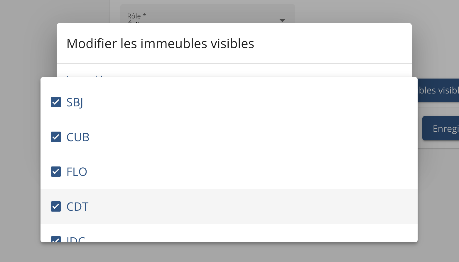 Sélection des immeubles visibles