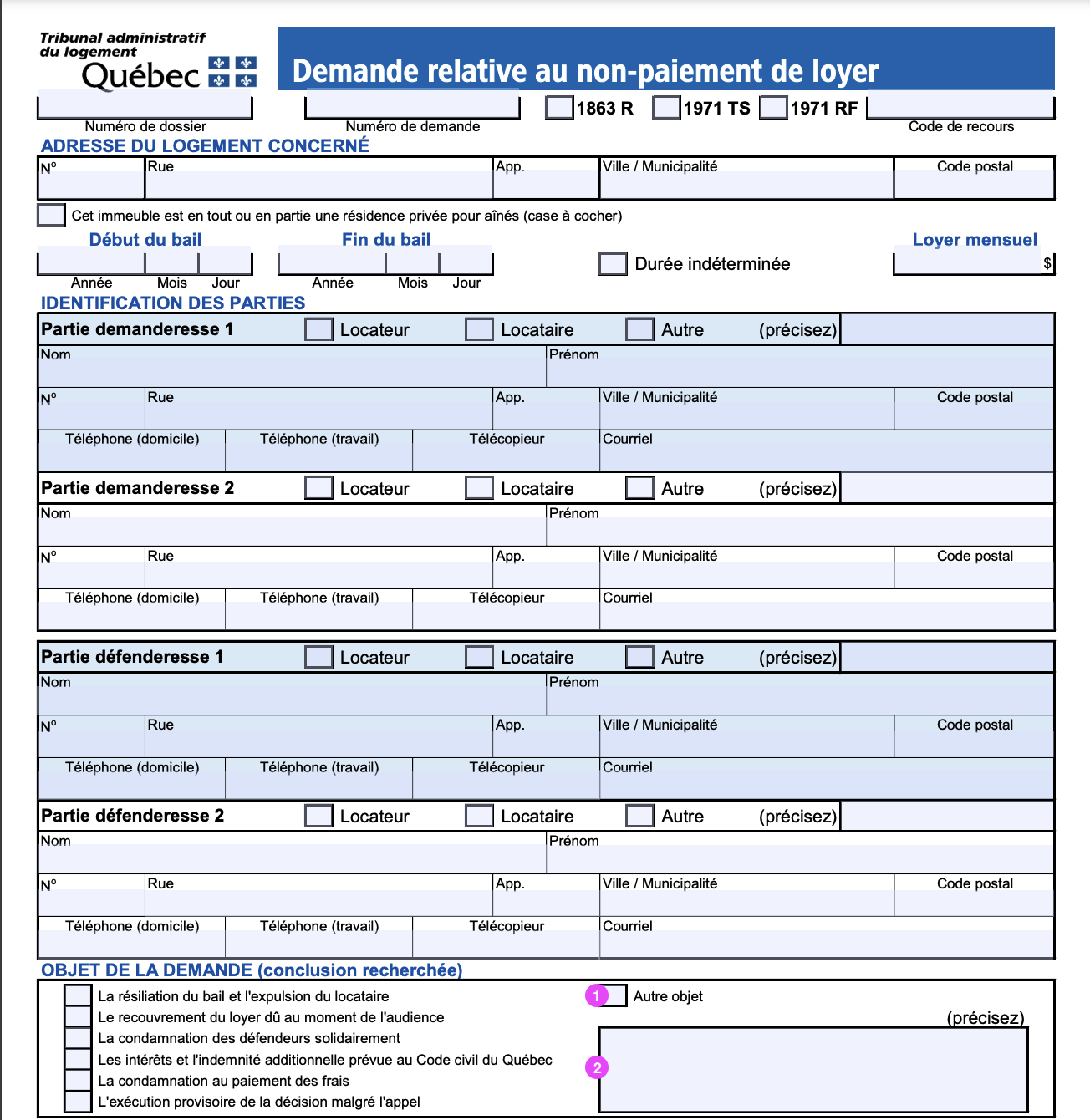 Dans la liste des conclusions potentiellement recherchées pour un dossier de non-paiement, l’option Autre a été ajoutée. Celle-ci permet d’entrer un texte qui apparaitra dans le champ correspondant du formulaire de Demande de relative au non-paiement de loyer.